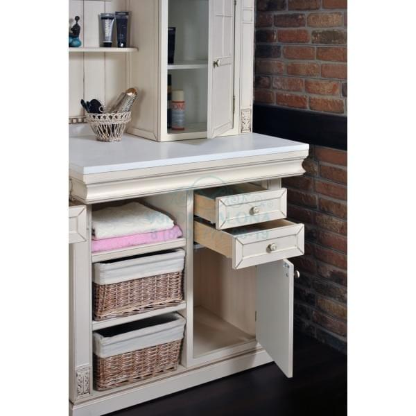 Порталы «Бостон» не оставят равнодушными персон с изысканным вкусом. Сочетание цвета слоновой кости с золотой патиной подчеркивают его неповторимость. Именно эти цвета всегда считались признаком аристократизма и власти. Кроме этого, эти цвета создают умиротворяющую, спокойную, расслабляющую атмосферу. Окрашивание осуществляется в несколько этапов: 1) изоляционный слой; 2) пропитка – детали покрывают жидкой грунтовочной краской; 3) затем изделия сохнут и снова покрываются грунтовкой, только более вязкой, чем для пропитки 4) после чего их покрывают двумя слоями краски и лака.Золотая патина наносится вручную нашими специалистами. Необычный светильник, расположенный слева от зеркала, декорирован кованными лепестками, что придает порталу "Бостон" особый шарм. Следует также подчеркнуть функциональность порталов: множество ящиков, закрытых и открытых полок позволят разместить все парикмахерские инструменты, обеспечив им надежное хранение. Представлено данное изделие в двух интерпретациях, что позволит создать неповторимый интерьер парикмахерского салона в классическом стиле.
