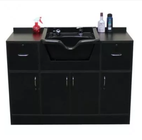 Барбершоп мойка "Раиса" - оборудованна ящиком на каждой стороне раковины и тремя просторными шкафами ниже.