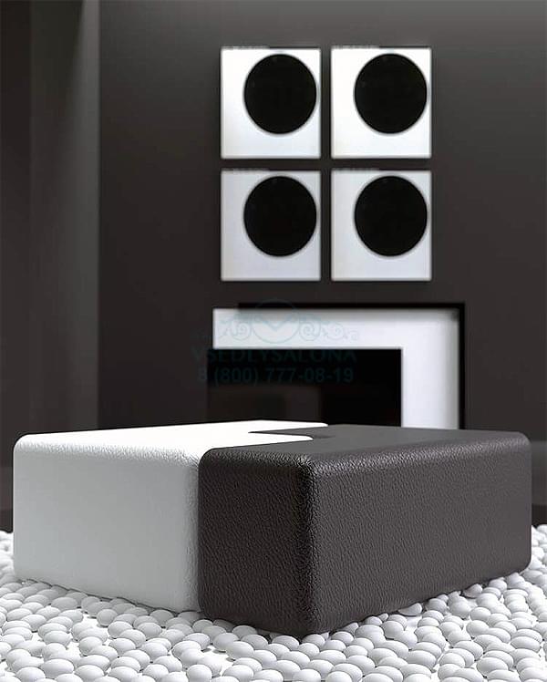 Диван для ожидания прямоугольной формы, мягкие элементы обтянуты искусственной кожей высшего качества.