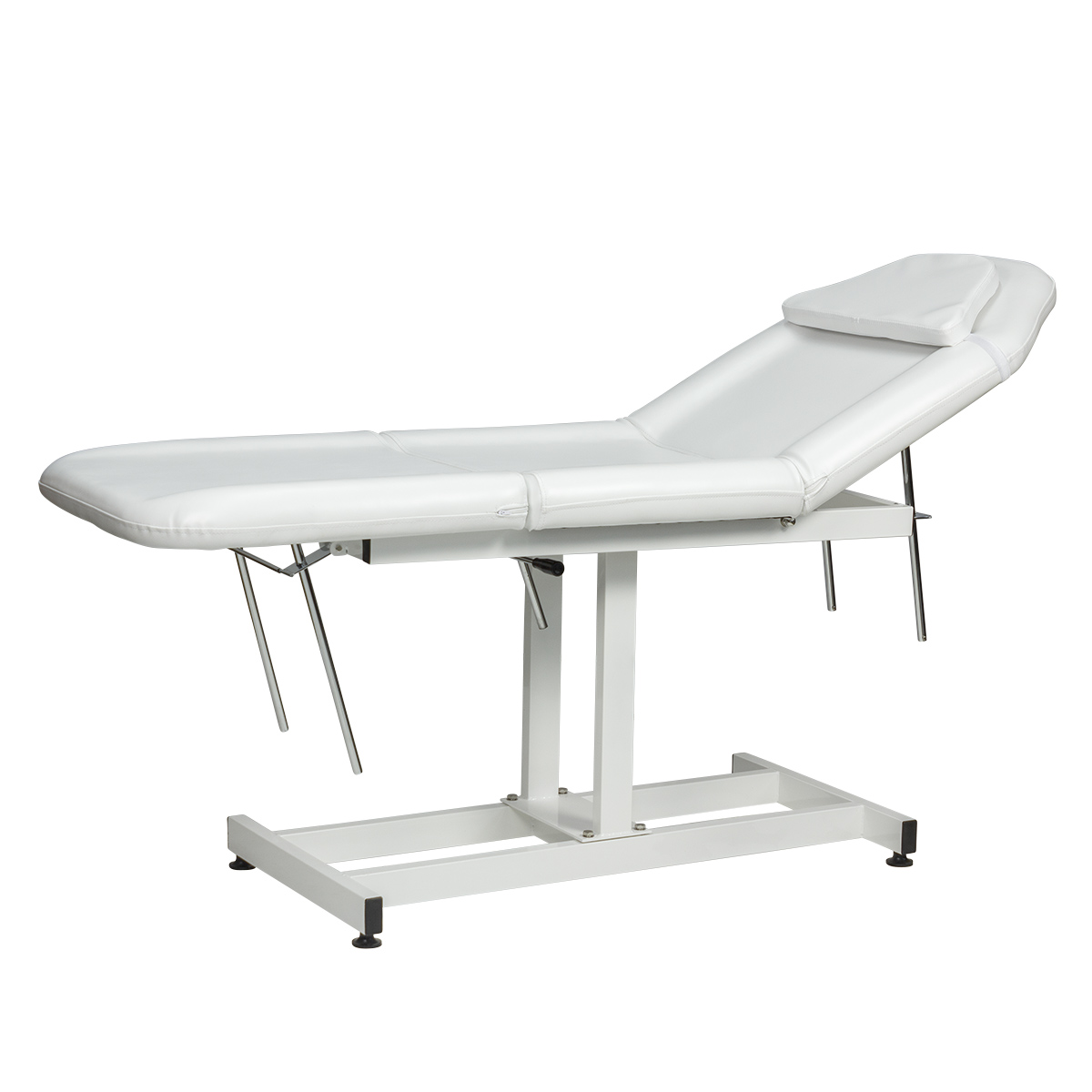 Продуманная конструкция без лишних деталей способна выдерживать регулярные рабочие нагрузки. В зависимости от процедуры, мастер может с легкостью поднять ножной элемент или спинку. Регулировка осуществляется механически.