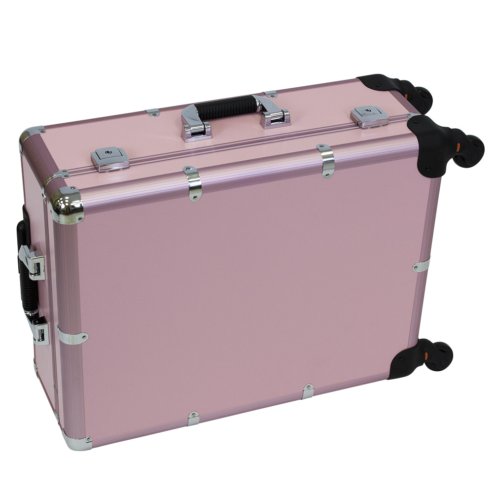 Мобильная студия визажиста VZ-210 поможет создать профессиональный уголок в любом салоне красоты или на выездном мероприятии. Студия представляет собой компактный столик с раздвижными полочками, зеркало и освещение из 6 ламп. В полочках предусмотрено специальное пространство для хранения косметики и инструмента, на верхних полках есть место для хранения палитры теней. Удобные телескопические ножки обеспечивают установку студии на любой поверхности. Высоту треноги можно регулировать. Студия визажиста собирается в компактный чемодан на колёсиках с удобной выдвижной ручкой. Поэтому её легко транспортировать, что делает её незаменимым помощником для выездной работы. Для дополнительной безопасности кейс закрывается на два ключа. Оборудование для визажистов изготовлено из ПВХ. Этот надёжный качественный материал защитит содержимое кейса от воздействия влаги и света. В открытую верхнюю часть встроено достаточно большое зеркало с гладкой поверхностью. Оно достаточно прочно и устойчиво к умеренным механическим повреждениям. Зеркальное полотно точно передаёт отображение, не искажая его. Рабочее место идеально освещается при помощи встроенных LED ламп по периметру зеркала. Шнур питания и розетка для электроприборов встроены в корпус кейса. Профессиональная студия визажиста VZ-210 дополнит интерьер любого современного салона красоты, а также станет незаменимым помощником в работе на конкурсах, модных показах и других выездных мероприятиях.