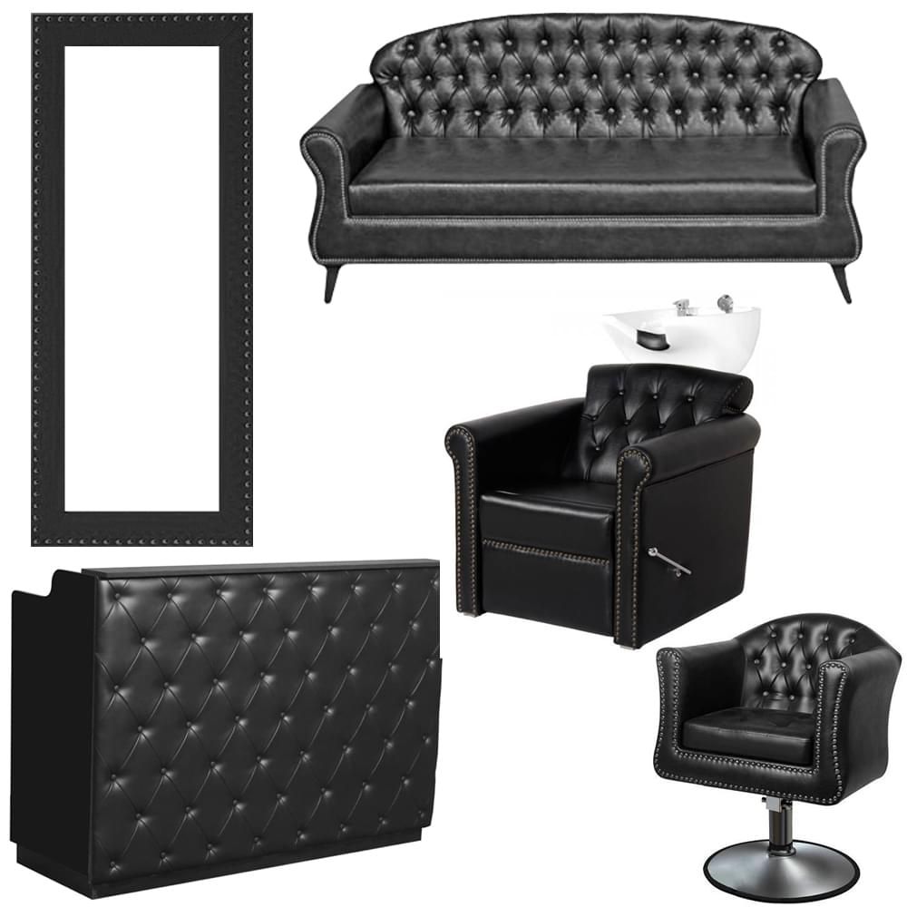 Парикмахерский комплект «Brutal» - стильный набор мебели для оформления барбершопа или мужского зала. В комплект входит комфортное и функциональное парикмахерское кресло, регулируемая мойка с мягким креслом, вертикальное одностороннее зеркало в красивой раме, стильный диван для холла и стойка для администратора.
