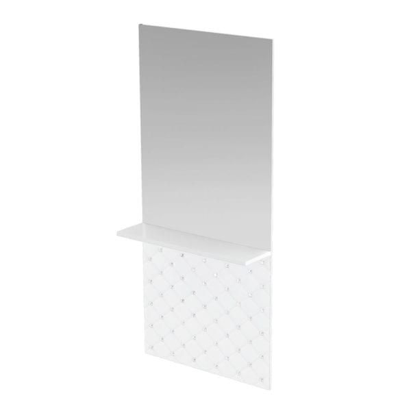 Парикмахерское зеркало «Гламур II» является видоизмененной и слегка дополненной версией зеркала «Гламур». Отличительной особенностью от предыдущего варианта является то, что теперь непосредственно вокруг зеркальной поверхности нет рамки, которая ранее занимала большую часть всей конструкции. За таким зеркалом будет удобно работать любому мастеру, так как оно не только высокое, но и достаточно широкое. Оно предназначено для использования одним человеком, а его крепление осуществляется непосредственно на стену. Основным материалом выступает ЛДСП желаемого цветового решения.