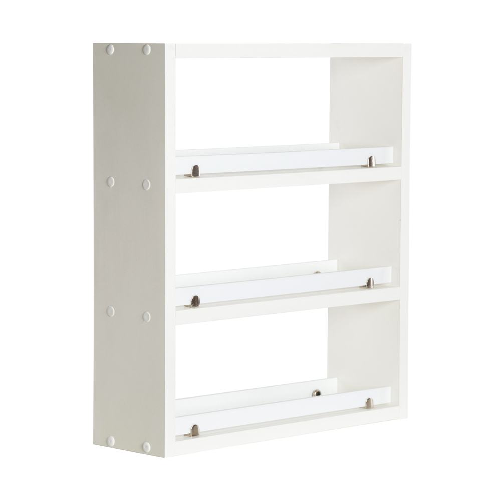 Полка представляет собой этажерку с тремя сквозными полками из ламинированного ДСП.