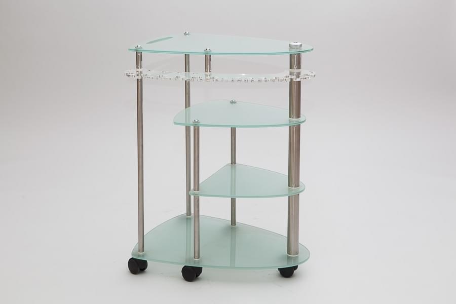 Лёгкая и многофункциональная тележка SD-977 предназначена для размещения косметологических аппаратов серии SD. Изделие представляет собой столик на стальном хромированном каркасе с четырьмя полками из прочного матового стекла. Конструкция разработана таким образом, что высота между ними позволяет устанавливать популярные и часто используемые косметологические инструменты и оборудование. Также тележка имеет специальный держатель для пилинга, дарсонваля и гальваники.