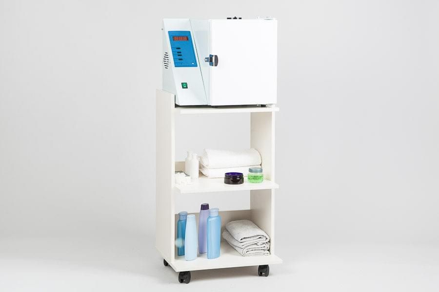 Тележка СК-02 является легкой и стильной моделью, выпускается в двух цветовых вариантах - "Белый" и "Ваниль". Конструкция представляет собой тумбу с открытыми полками в количестве трёх штук, изготовленных из прочного и практичного ЛДСП. Изделие разработано специально для салонов красоты для удобного размещения оборудования и инструментов косметологов и мастеров, поэтому устойчиво к механическим и химическим воздействиям, а также к перепадам температуры.