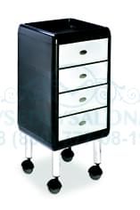 Парикмахерская тележка Т-30 оснащена глубокими и вместительными ящиками для парикмахерских принадлежностей, а также фенодержателем для еще большего удобства работы. Она выполнена в классическом черном цвете, что делает ее универсальной моделью практически для любой современной парикмахерской или барбершопа.