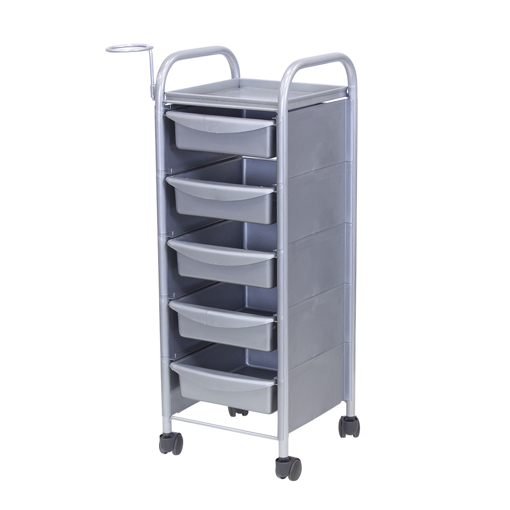 Парикмахерская тележка Т-30 оснащена глубокими и вместительными ящиками для парикмахерских принадлежностей, а также фенодержателем для еще большего удобства работы. Она выполнена в классическом черном цвете, что делает ее универсальной моделью практически для любой современной парикмахерской или барбершопа.