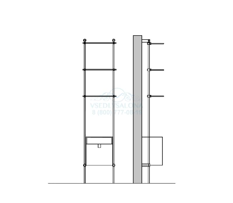 Стеновой элемент со стеклянными полочками, крепление к стене. Возможен вариант со встроенной раковиной (шириной 70см или 45см).