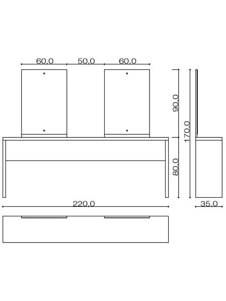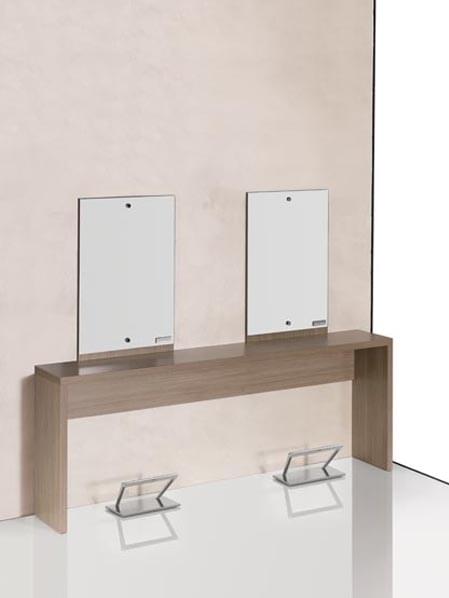 Flat представляется в четырех стильных вариантах : с одинарным или двойным рабочим зеркалом или, как остров блоками с двумя или четырьмя рабочими зеркалами.
