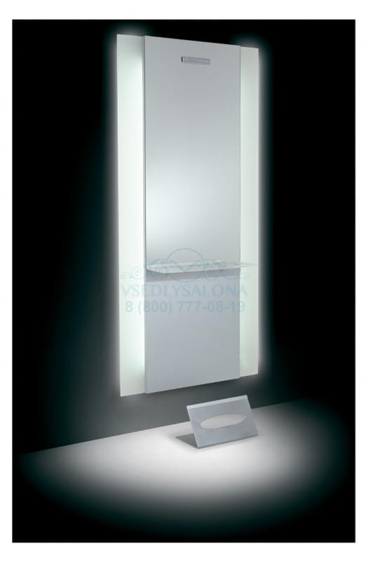 Зеркало парикмахерское, одностороннее, крепление к стене. Рама и столешница из белого или голубого оргстекла (с подсветкой/без подсветки). Размер: 170х81х28